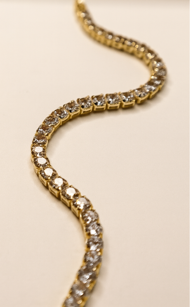 Luz tenue, presencia imponente. Esta pulsera de tenis de corte ovalado captura cada destello: un accesorio celestial imprescindible.