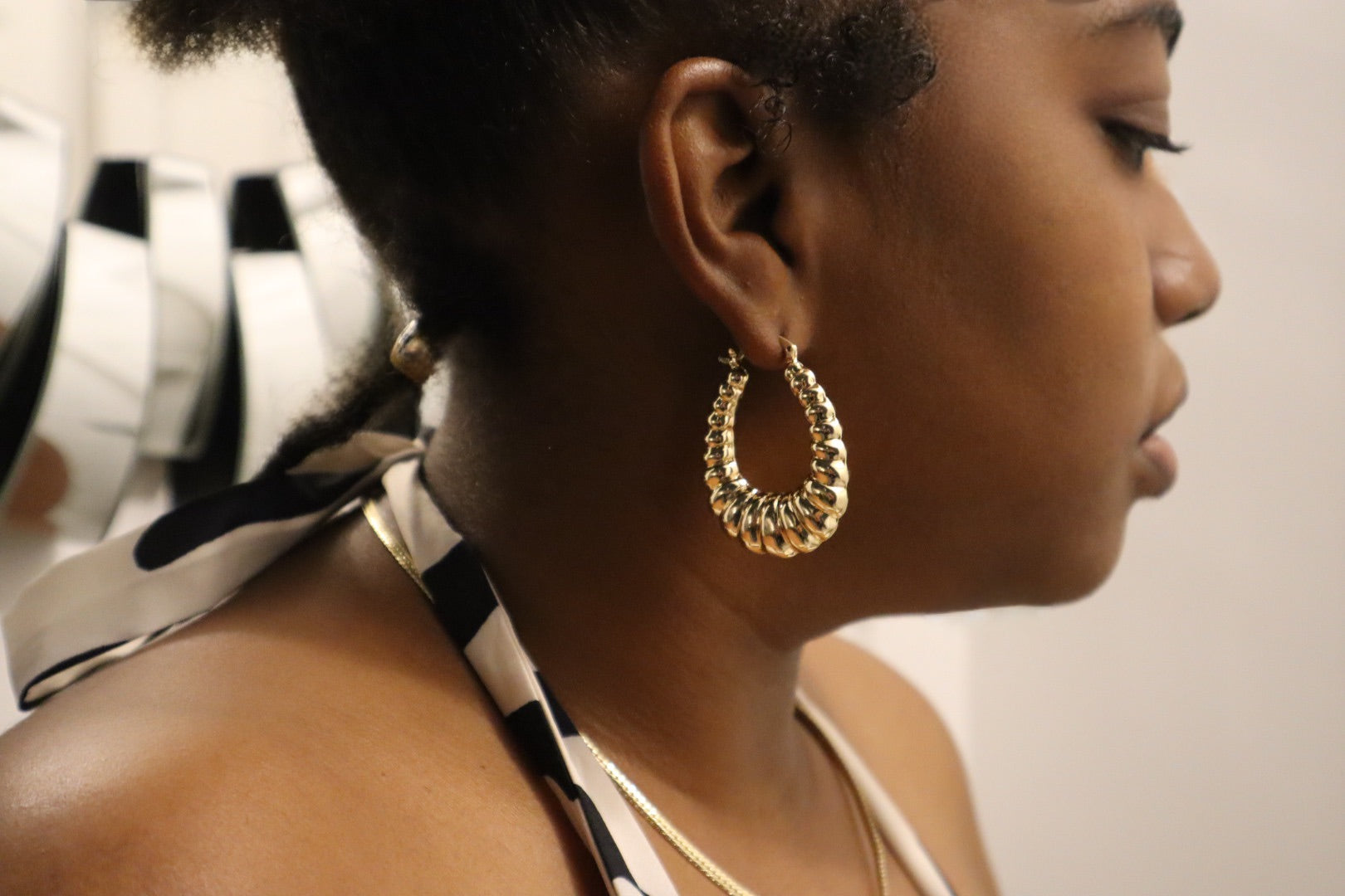 Bold, sculpted hoops with a soft petal-like curve that catches light beautifully. Lightweight, radiant, and perfect for elevating any everyday or going-out look.